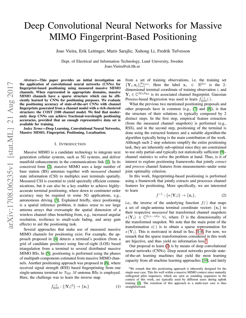 This paper provides an initial investigation on the application of convolutional neural networks (CNNs) for fingerprint-based positioning using measured massive MIMO channels. When represented in appropriate domains, massive MIMO channels have a sparse structure which can be efficiently learned by CNNs for positioning purposes. We evaluate the positioning accuracy of state-of-the-art CNNs with channel fingerprints generated from a channel model with a rich clustered structure: the COST 2100 channel model. We find that moderately deep CNNs can achieve fractional-wavelength positioning accuracies, provided that an enough representative data set is available for training.