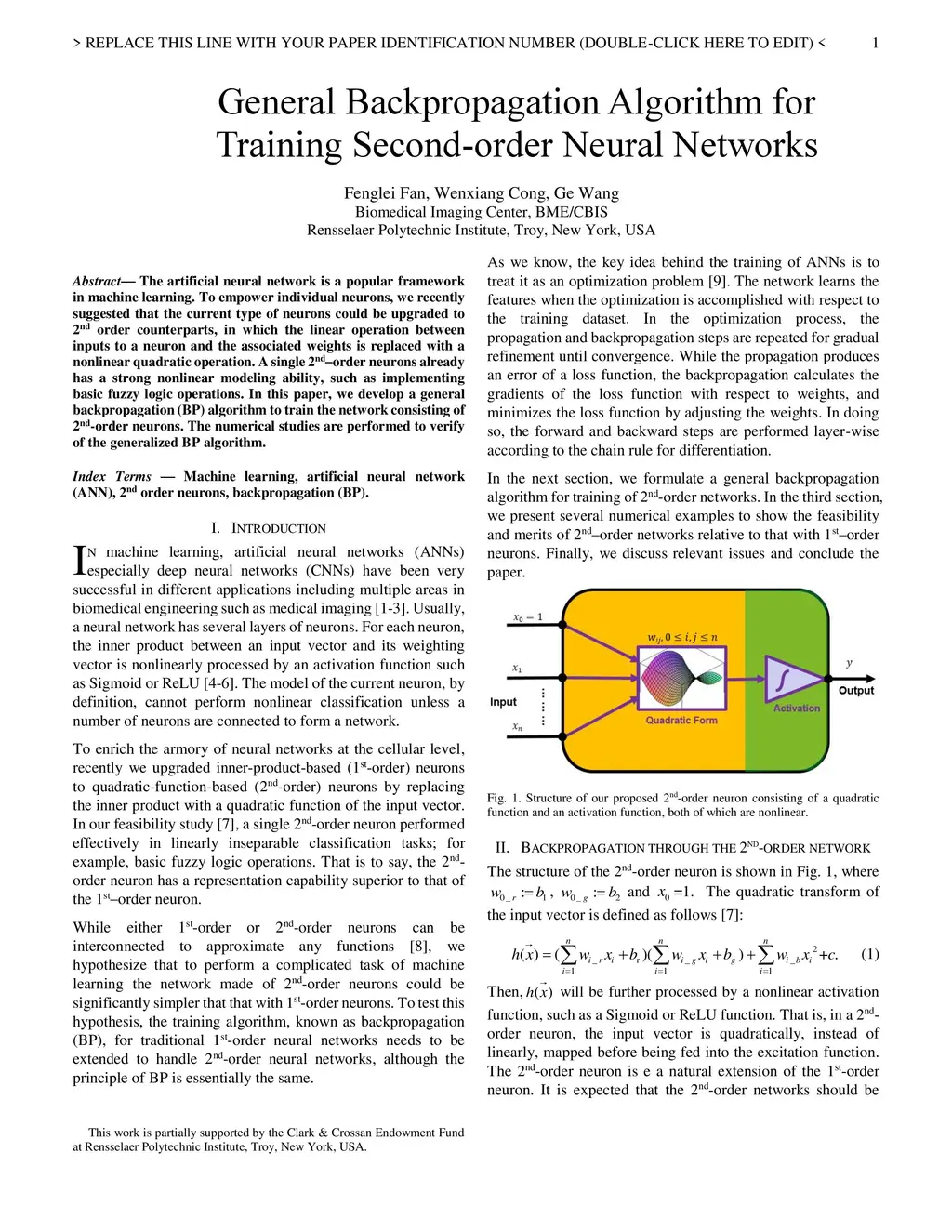 General Backpropagation Algorithm for Training Second-order Neural