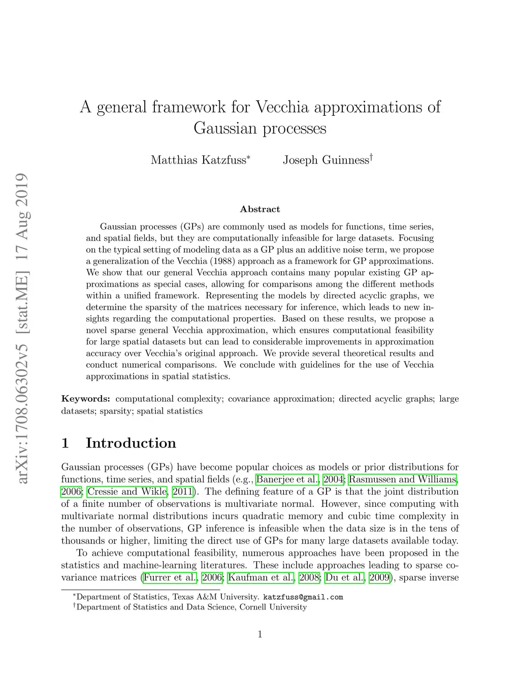 Gaussian processes (GPs) are commonly used as models for functions, time series, and spatial fields, but they are computationally infeasible for large datasets. Focusing on the typical setting of modeling data as a GP plus an additive noise term, we propose a generalization of the Vecchia (1988) approach as a framework for GP approximations. We show that our general Vecchia approach contains many popular existing GP approximations as special cases, allowing for comparisons among the different methods within a unified framework. Representing the models by directed acyclic graphs, we determine the sparsity of the matrices necessary for inference, which leads to new insights regarding the computational properties. Based on these results, we propose a novel sparse general Vecchia approximation, which ensures computational feasibility for large spatial datasets but can lead to considerable improvements in approximation accuracy over Vecchia's original approach. We provide several theoretical results and conduct numerical comparisons. We conclude with guidelines for the use of Vecchia approximations in spatial statistics.