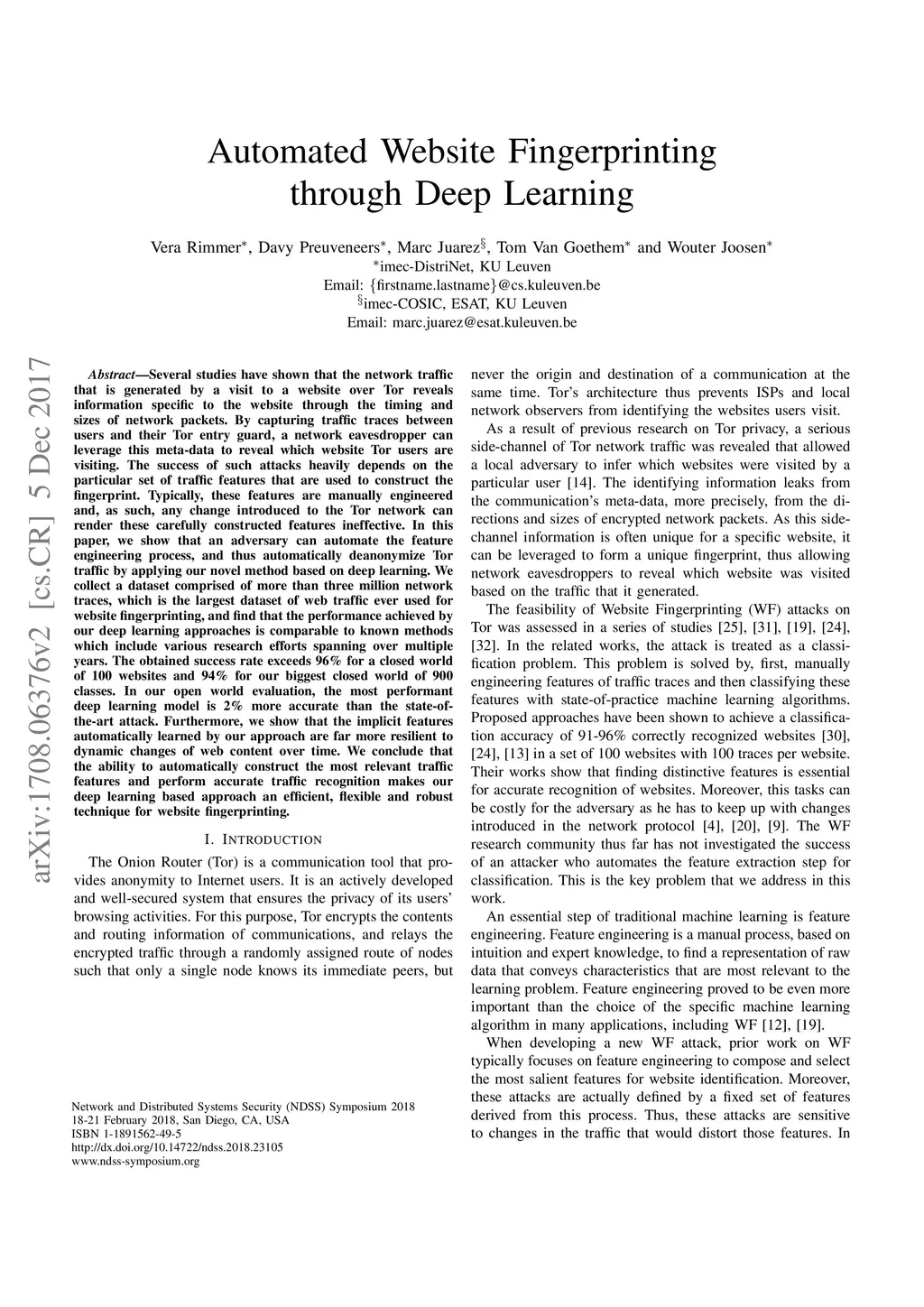 Automated Website Fingerprinting through Deep Learning