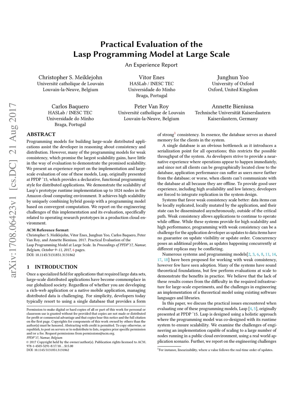 Programming models for building large-scale distributed applications assist the developer in reasoning about consistency and distribution. However, many of the programming models for weak consistency, which promise the largest scalability gains, have little in the way of evaluation to demonstrate the promised scalability. We present an experience report on the implementation and large-scale evaluation of one of these models, Lasp, originally presented at PPDP `15, which provides a declarative, functional programming style for distributed applications. We demonstrate the scalability of Lasp's prototype runtime implementation up to 1024 nodes in the Amazon cloud computing environment. It achieves high scalability by uniquely combining hybrid gossip with a programming model based on convergent computation. We report on the engineering challenges of this implementation and its evaluation, specifically related to operating research prototypes in a production cloud environment.
