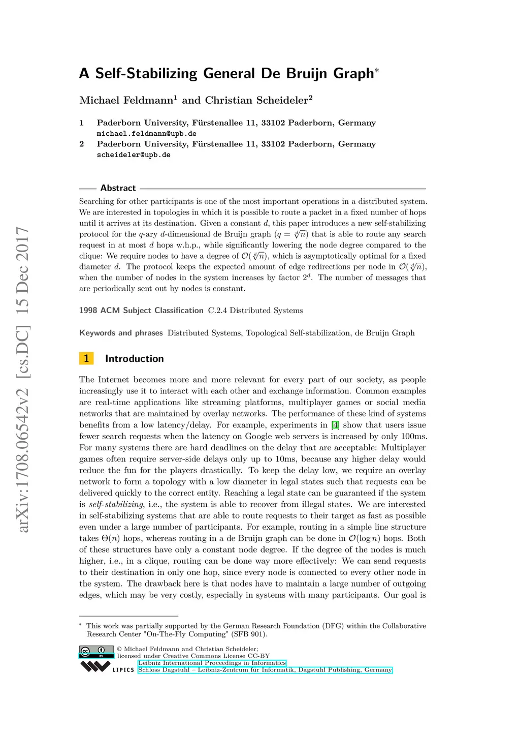 Searching for other participants is one of the most important operations in a distributed system. We are interested in topologies in which it is possible to route a packet in a fixed number of hops until it arrives at its destination. Given a constant dd, this paper introduces a new self-stabilizing protocol for the qq-ary dd-dimensional de Bruijn graph (q=ndq = \sqrt[d]{n}) that is able to route any search request in at most dd hops w.h.p., while significantly lowering the node degree compared to the clique: We require nodes to have a degree of O(nd)\mathcal O(\sqrt[d]{n}), which is asymptotically optimal for a fixed diameter dd. The protocol keeps the expected amount of edge redirections per node in O(nd)\mathcal O(\sqrt[d]{n}), when the number of nodes in the system increases by factor 2d2^d. The number of messages that are periodically sent out by nodes is constant.