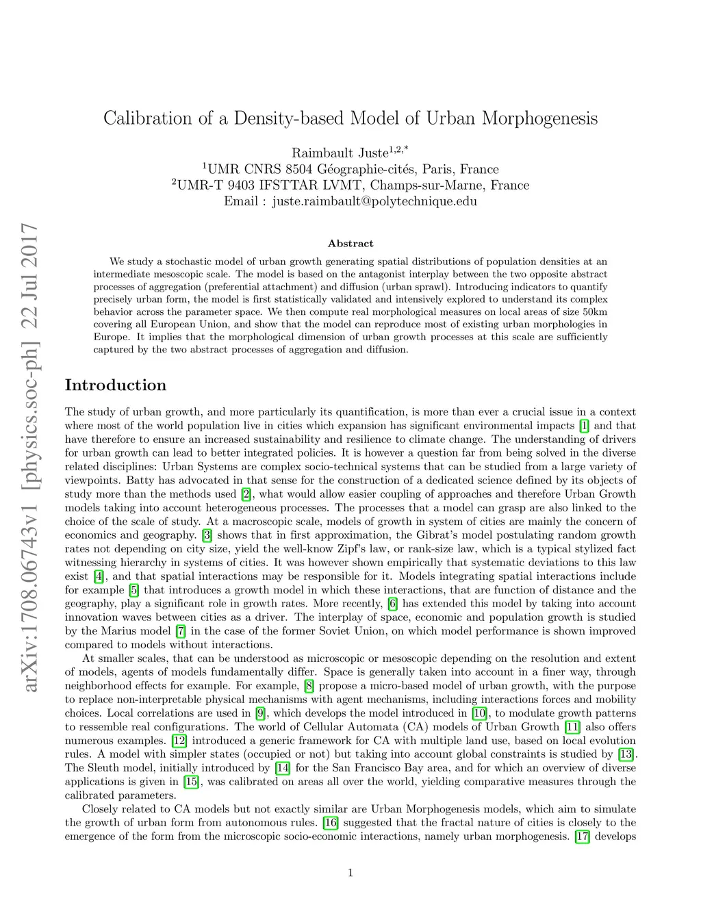 We study a stochastic model of urban growth generating spatial distributions of population densities at an intermediate mesoscopic scale. The model is based on the antagonist interplay between the two opposite abstract processes of aggregation (preferential attachment) and diffusion (urban sprawl). Introducing indicators to quantify precisely urban form, the model is first statistically validated and intensively explored to understand its complex behavior across the parameter space. We then compute real morphological measures on local areas of size 50km covering all European Union, and show that the model can reproduce most of existing urban morphologies in Europe. It implies that the morphological dimension of urban growth processes at this scale are sufficiently captured by the two abstract processes of aggregation and diffusion.