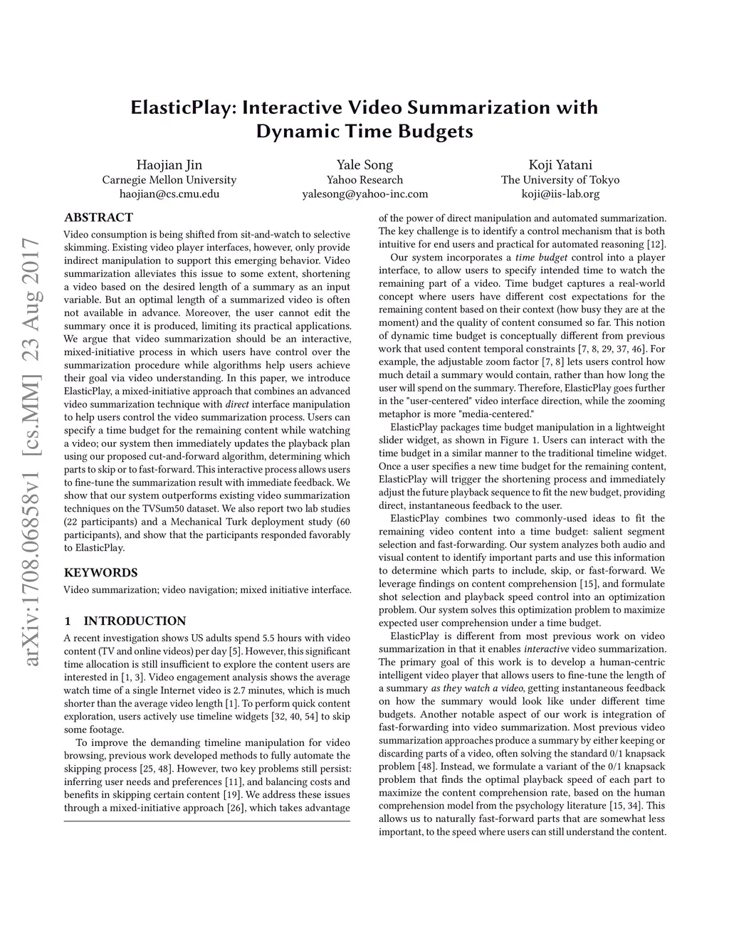 ElasticPlay: Interactive Video Summarization with Dynamic Time Budgets