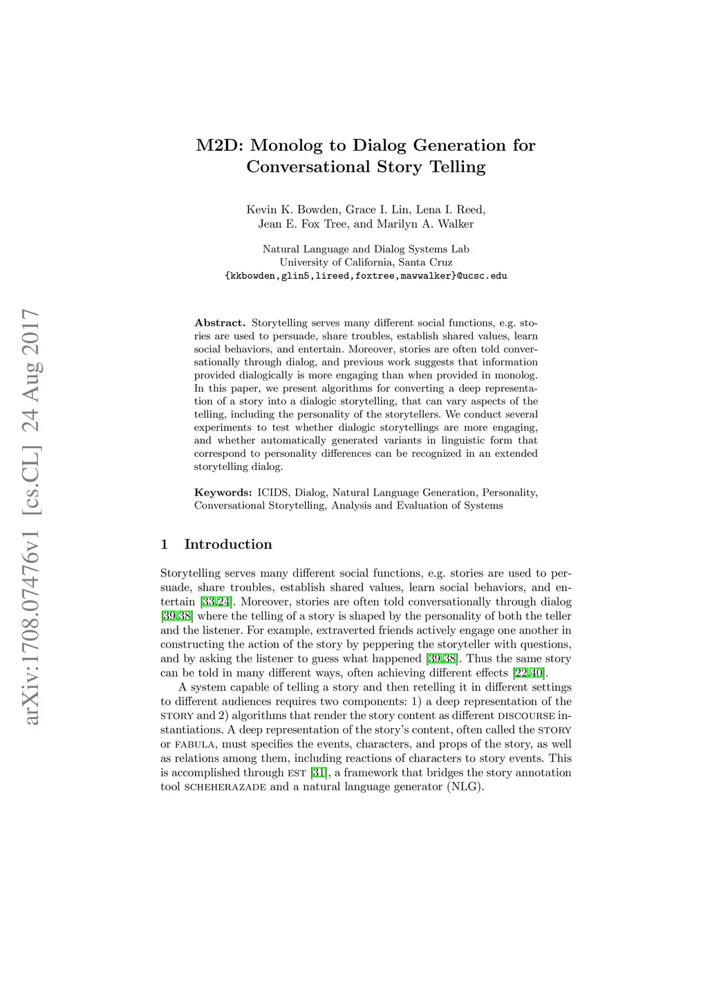 M2D: Monolog to Dialog Generation for Conversational Story Telling