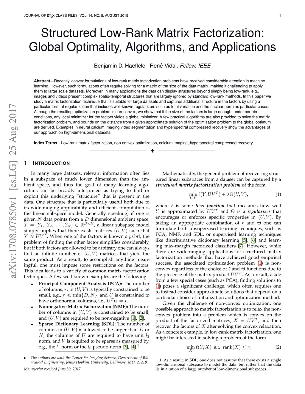 Structured Low-Rank Matrix Factorization: Global Optimality, Algorithms,