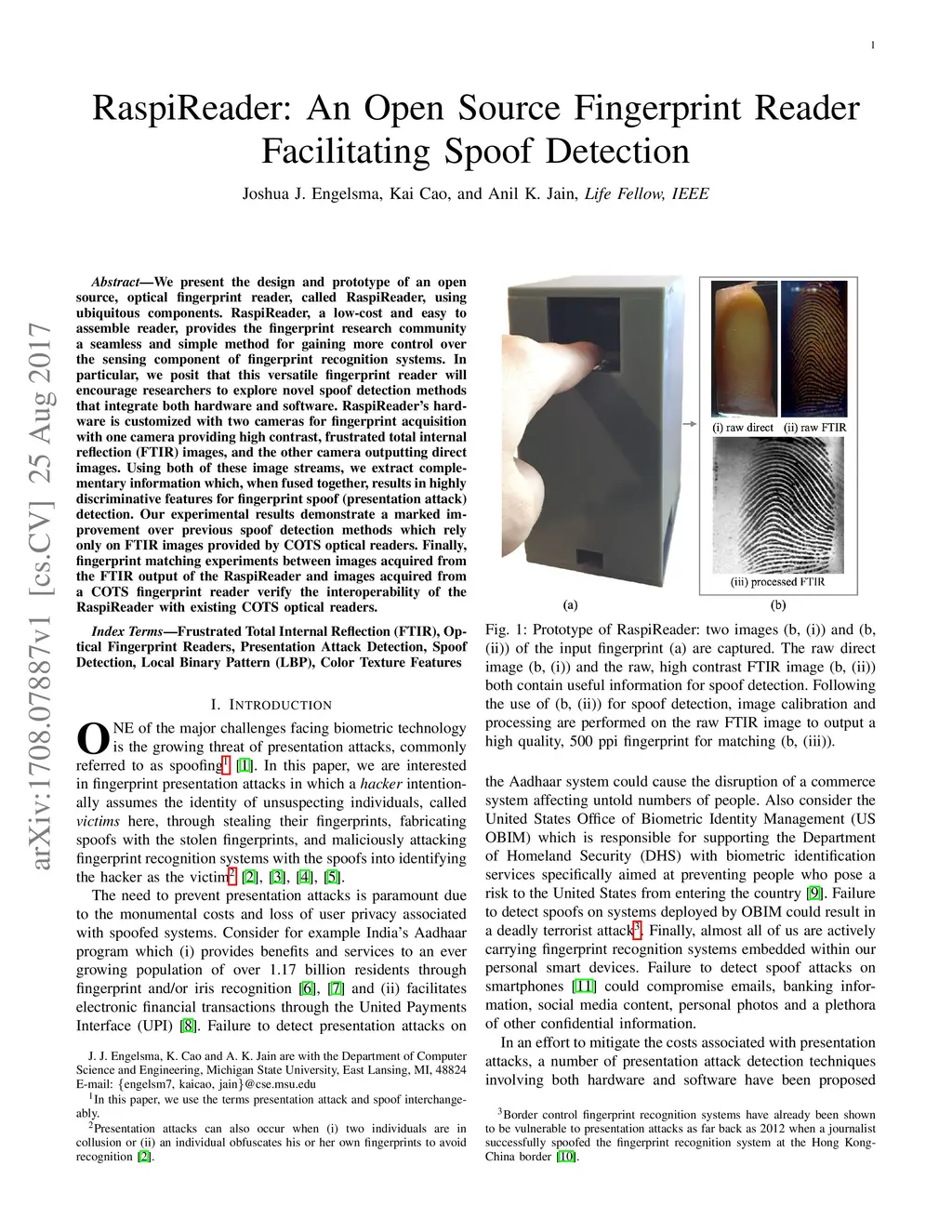 RaspiReader: An Open Source Fingerprint Reader Facilitating Spoof