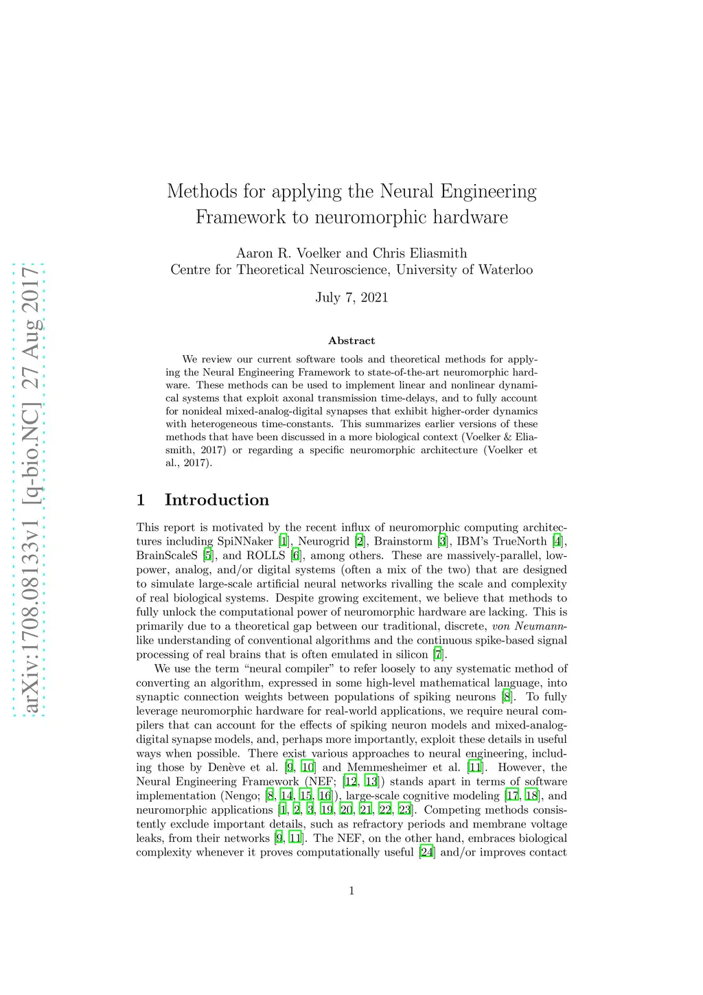 Methods for applying the Neural Engineering Framework to neuromorphic
