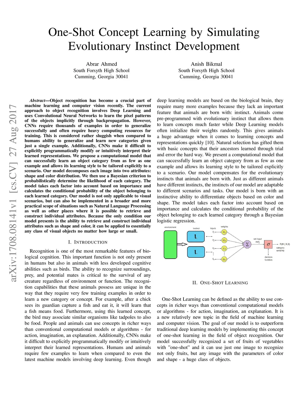 One-Shot Concept Learning by Simulating Evolutionary Instinct