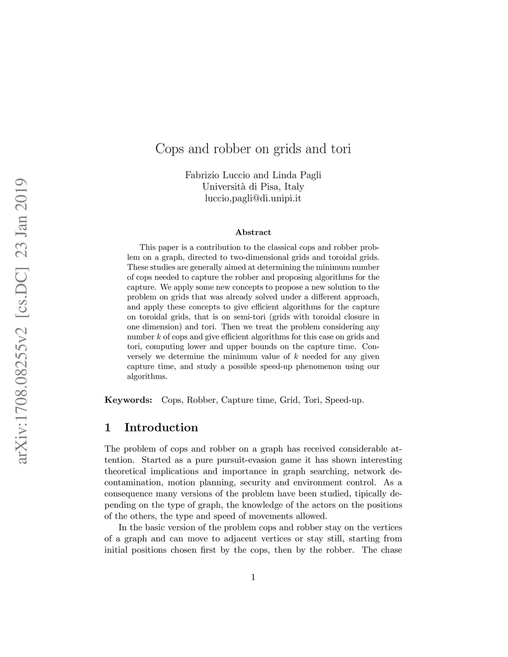 This paper is a contribution to the classical cops and robber problem on a graph, directed to two-dimensional grids and toroidal grids. These studies are generally aimed at determining the minimum number of cops needed to capture the robber and proposing algorithms for the capture. We apply some new concepts to propose a new solution to the problem on grids that was already solved under a different approach, and apply these concepts to give efficient algorithms for the capture on toroidal grids. As for grids, we show that two cops suffice even in a semi-torus (i.e. a grid with toroidal closure in one dimension) and three cops are necessary and sufficient in a torus. Then we treat the problem in function of any number k of cops, giving efficient algorithms for grids and tori and computing lower and upper bounds on the capture time. Conversely we determine the minimum value of k needed for any given capture time and study a possible speed-up phenomenon.