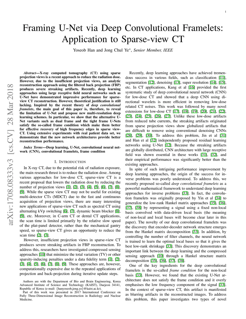 Framing U-Net via Deep Convolutional Framelets: Application to