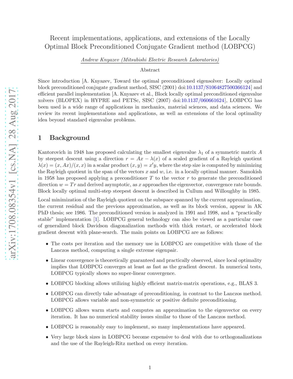 Optimal Block Preconditioned Conjugate Gradient method (LOBPCG)