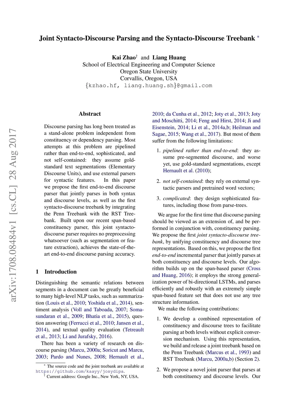 Joint Syntacto-Discourse Parsing and the Syntacto-Discourse Treebank