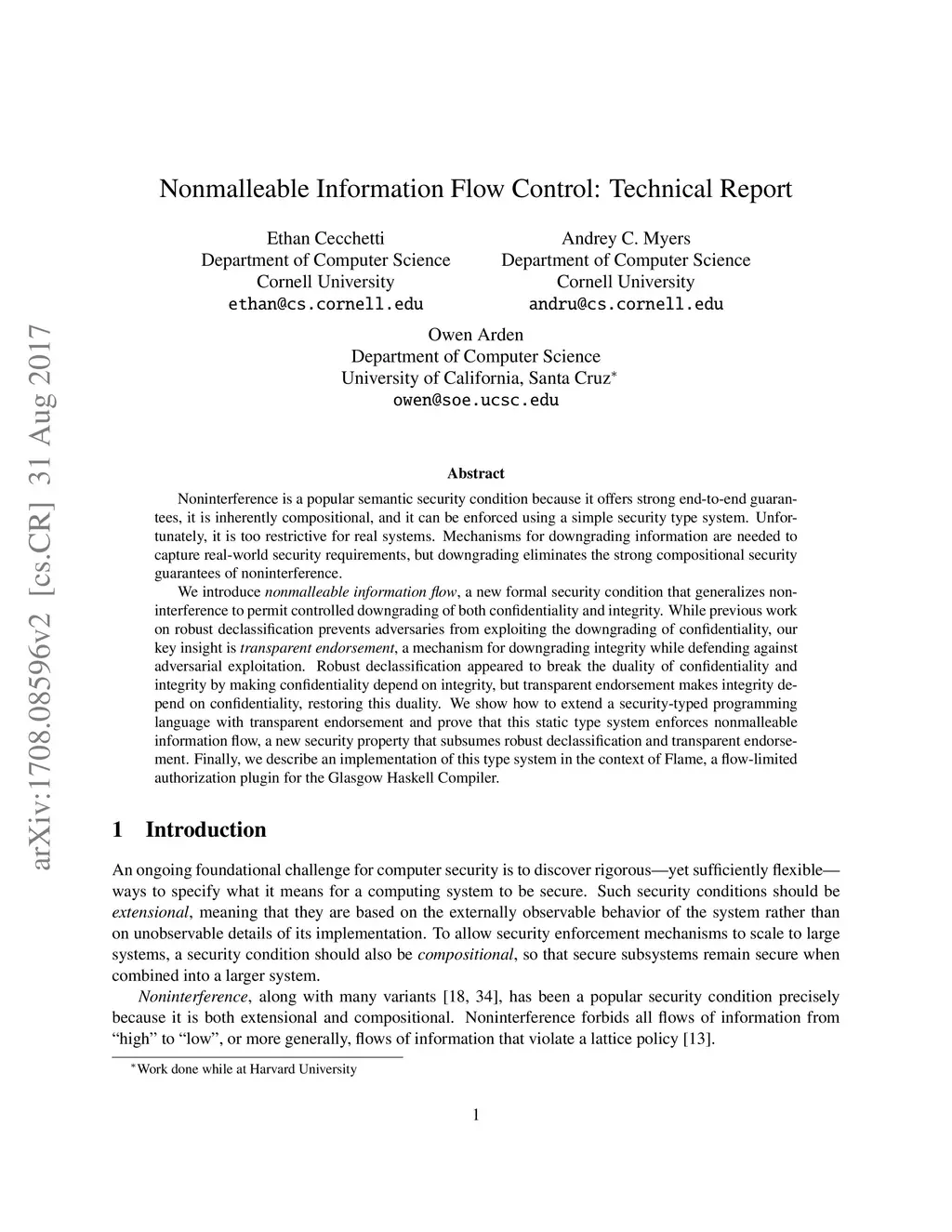 Nonmalleable Information Flow: Technical Report