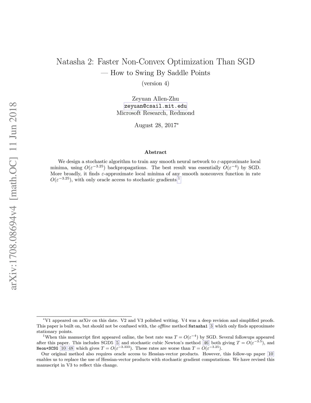 We design a stochastic algorithm to train any smooth neural network to -approximate local minima, using backpropagations. The best result was essentially by SGD. More broadly, it finds -approximate local minima of any smooth nonconvex function in rate , with only oracle access to stochastic gradients.