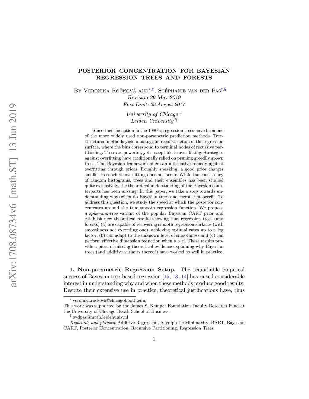 Since their inception in the 1980's, regression trees have been one of the more widely used non-parametric prediction methods. Tree-structured methods yield a histogram reconstruction of the regression surface, where the bins correspond to terminal nodes of recursive partitioning. Trees are powerful, yet susceptible to over-fitting. Strategies against overfitting have traditionally relied on pruning greedily grown trees. The Bayesian framework offers an alternative remedy against overfitting through priors. Roughly speaking, a good prior charges smaller trees where overfitting does not occur. While the consistency of random histograms, trees and their ensembles has been studied quite extensively, the theoretical understanding of the Bayesian counterparts has been missing. In this paper, we take a step towards understanding why/when do Bayesian trees and their ensembles not overfit. To address this question, we study the speed at which the posterior concentrates around the true smooth regression function. We propose a spike-and-tree variant of the popular Bayesian CART prior and establish new theoretical results showing that regression trees (and their ensembles) (a) are capable of recovering smooth regression surfaces, achieving optimal rates up to a log factor, (b) can adapt to the unknown level of smoothness and (c) can perform effective dimension reduction when p>n. These results provide a piece of missing theoretical evidence explaining why Bayesian trees (and additive variants thereof) have worked so well in practice.
