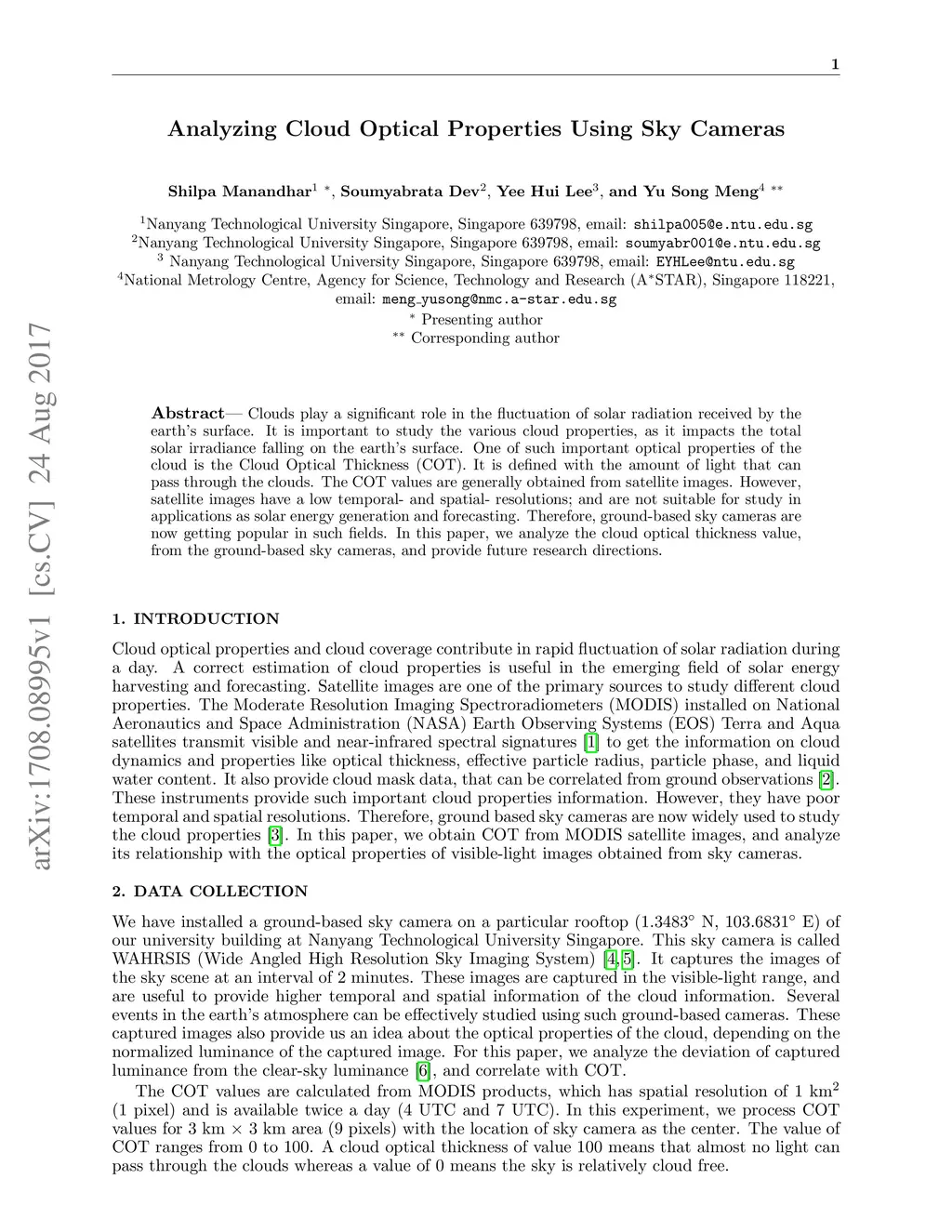 Analyzing Cloud Optical Properties Using Sky Cameras