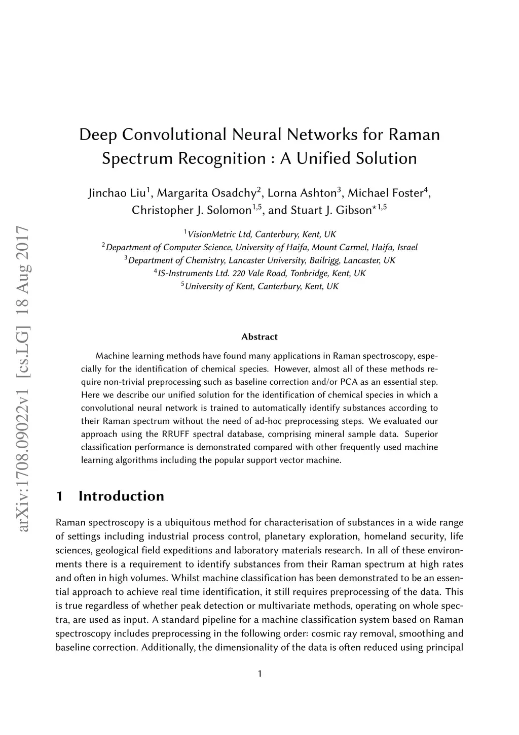 Deep Convolutional Neural Networks for Raman Spectrum Recognition: A