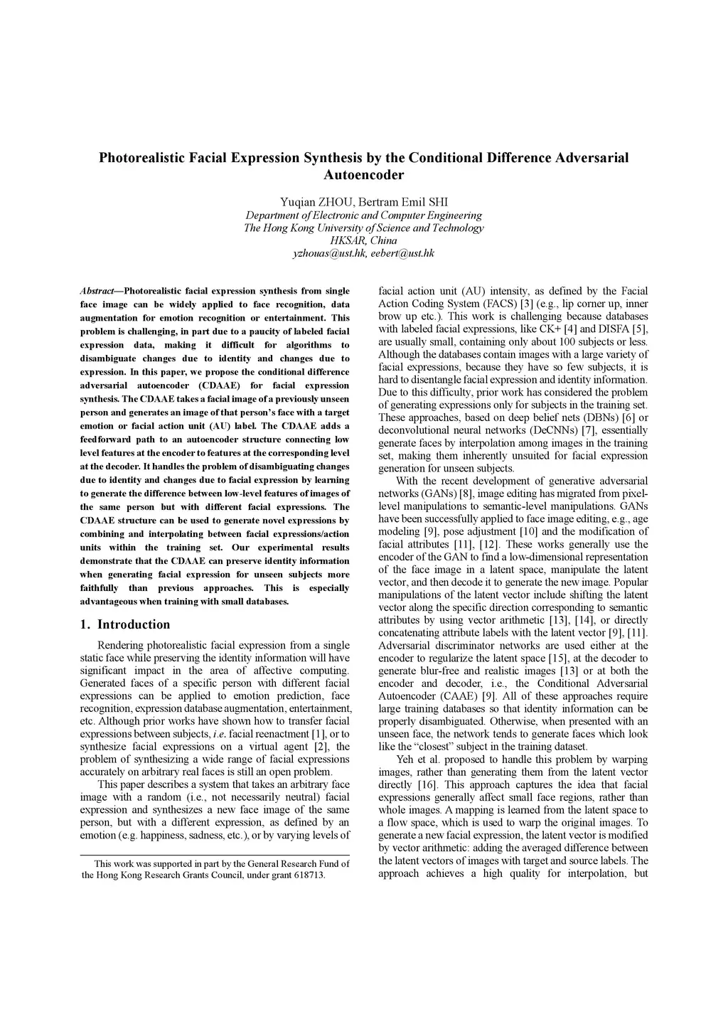 Photorealistic Facial Expression Synthesis by the Conditional Difference