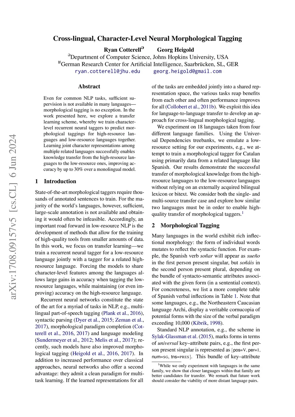 Cross-lingual, Character-Level Neural Morphological Tagging