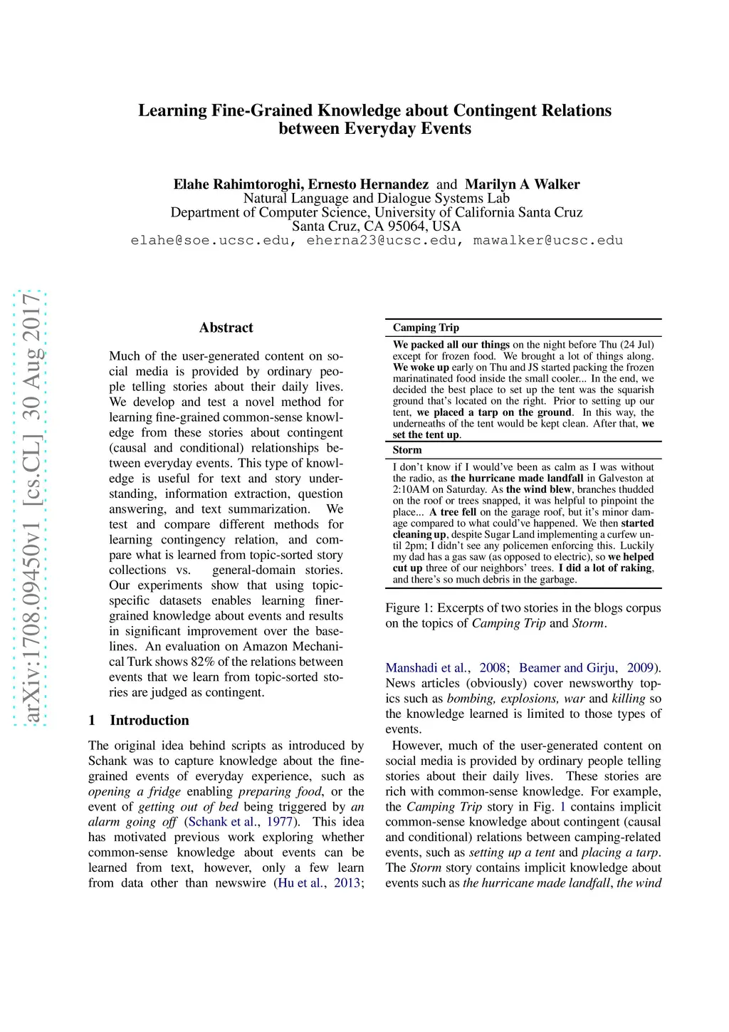 Much of the user-generated content on social media is provided by ordinary people telling stories about their daily lives. We develop and test a novel method for learning fine-grained common-sense knowledge from these stories about contingent (causal and conditional) relationships between everyday events. This type of knowledge is useful for text and story understanding, information extraction, question answering, and text summarization. We test and compare different methods for learning contingency relation, and compare what is learned from topic-sorted story collections vs. general-domain stories. Our experiments show that using topic-specific datasets enables learning finer-grained knowledge about events and results in significant improvement over the baselines. An evaluation on Amazon Mechanical Turk shows 82% of the relations between events that we learn from topic-sorted stories are judged as contingent.