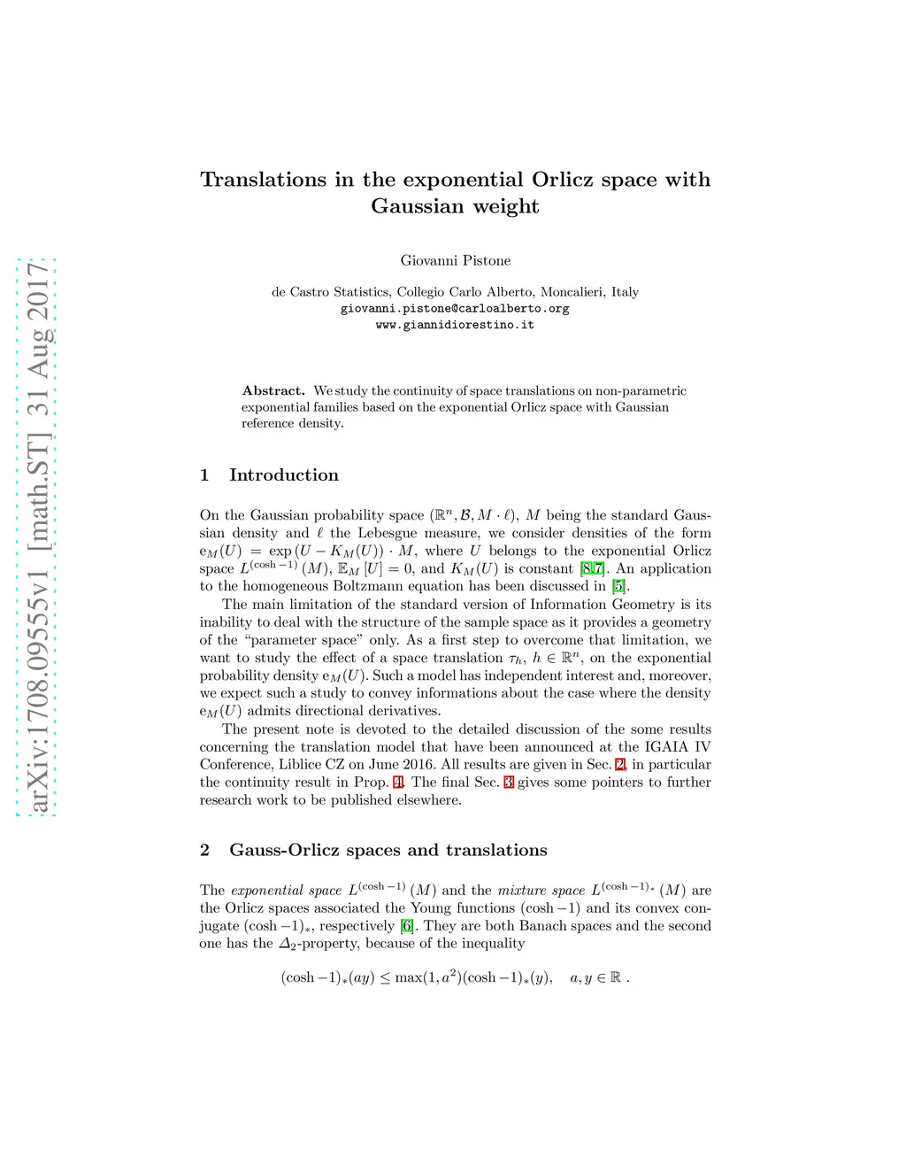 We study the continuity of space translations on non-parametric exponential families based on the exponential Orlicz space with Gaussian reference density.