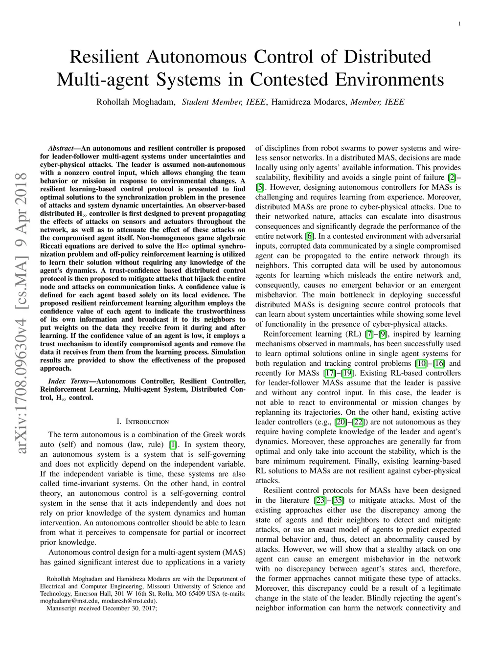 Resilient Autonomous Control of Distributed Multi-agent Systems in