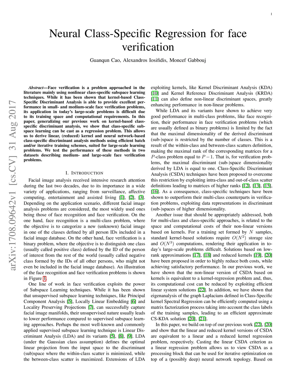 Neural Class-Specific Regression for face verification