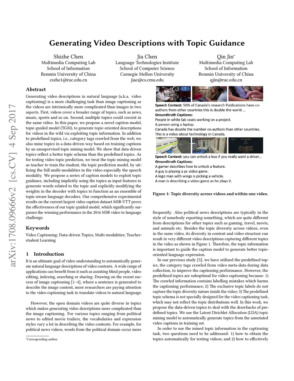 Generating Video Descriptions with Topic Guidance