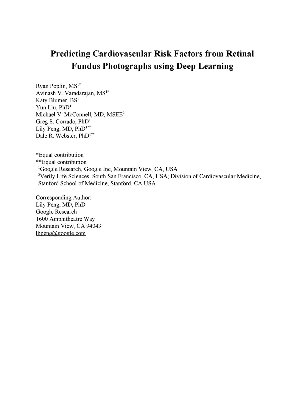 Predicting Cardiovascular Risk Factors from Retinal Fundus Photographs