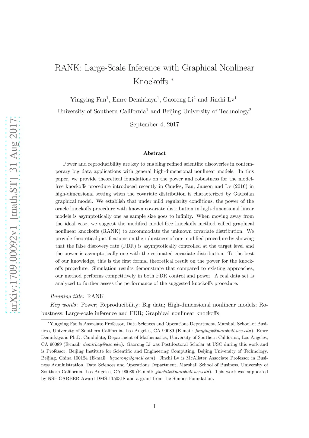 RANK: Large-Scale Inference with Graphical Nonlinear Knockoffs