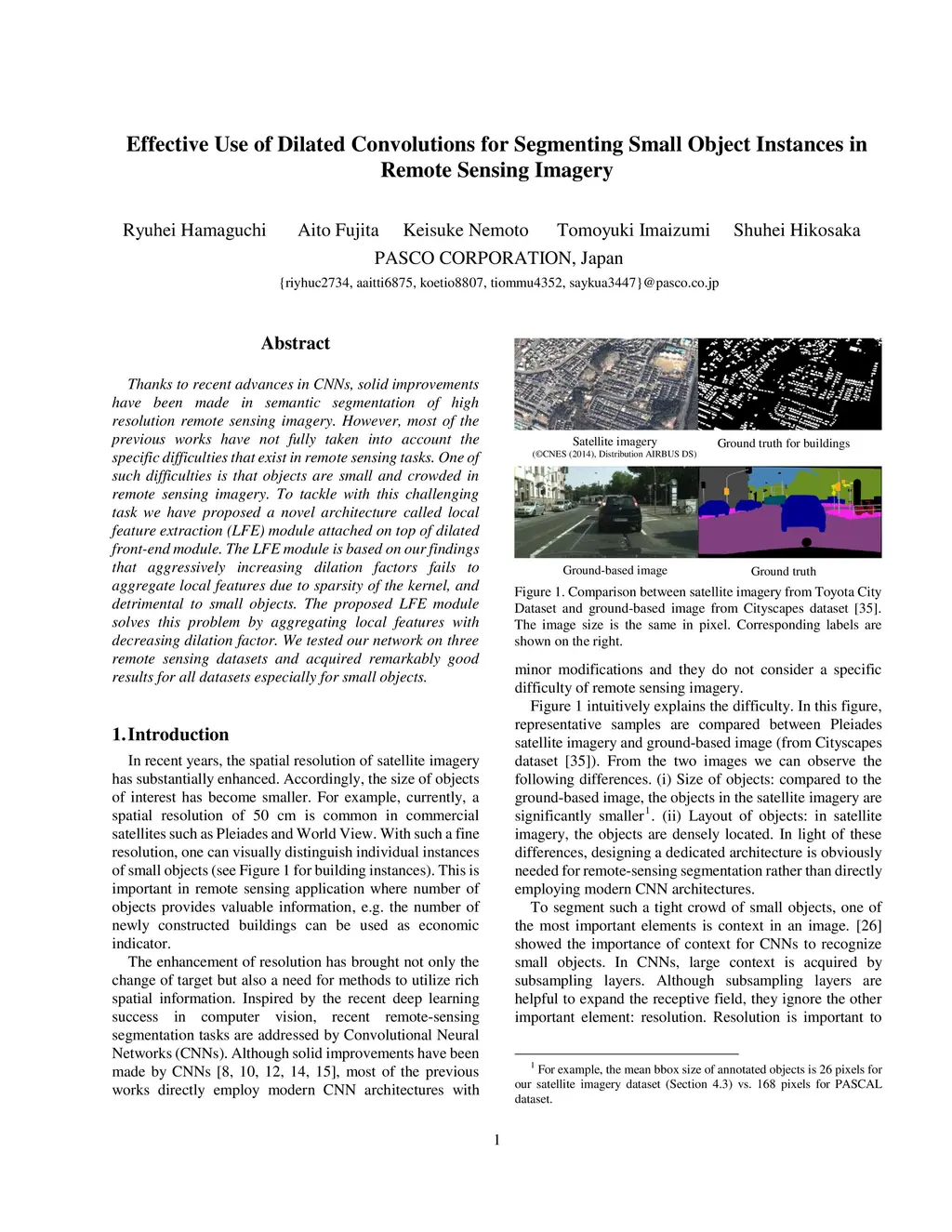 Thanks to recent advances in CNNs, solid improvements have been made in semantic segmentation of high resolution remote sensing imagery. However, most of the previous works have not fully taken into account the specific difficulties that exist in remote sensing tasks. One of such difficulties is that objects are small and crowded in remote sensing imagery. To tackle with this challenging task we have proposed a novel architecture called local feature extraction (LFE) module attached on top of dilated front-end module. The LFE module is based on our findings that aggressively increasing dilation factors fails to aggregate local features due to sparsity of the kernel, and detrimental to small objects. The proposed LFE module solves this problem by aggregating local features with decreasing dilation factor. We tested our network on three remote sensing datasets and acquired remarkably good results for all datasets especially for small objects.