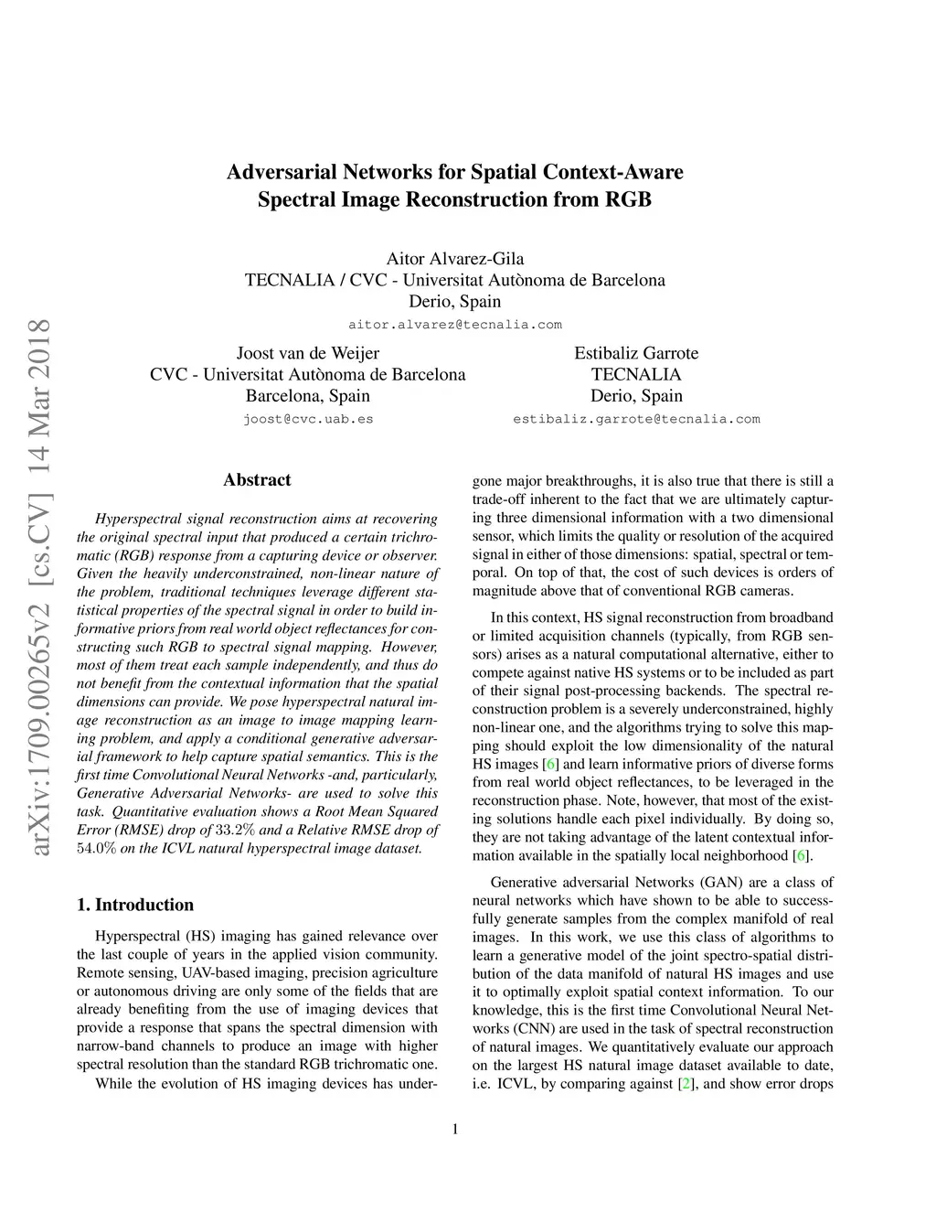 Adversarial Networks for Spatial Context-Aware Spectral Image