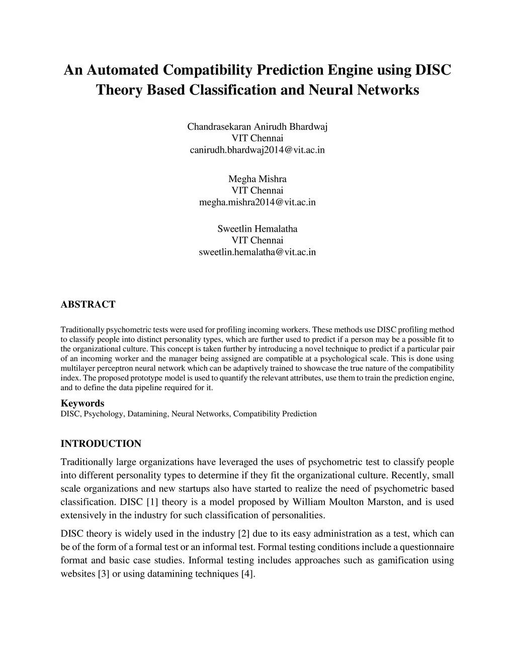 An Automated Compatibility Prediction Engine using DISC Theory Based