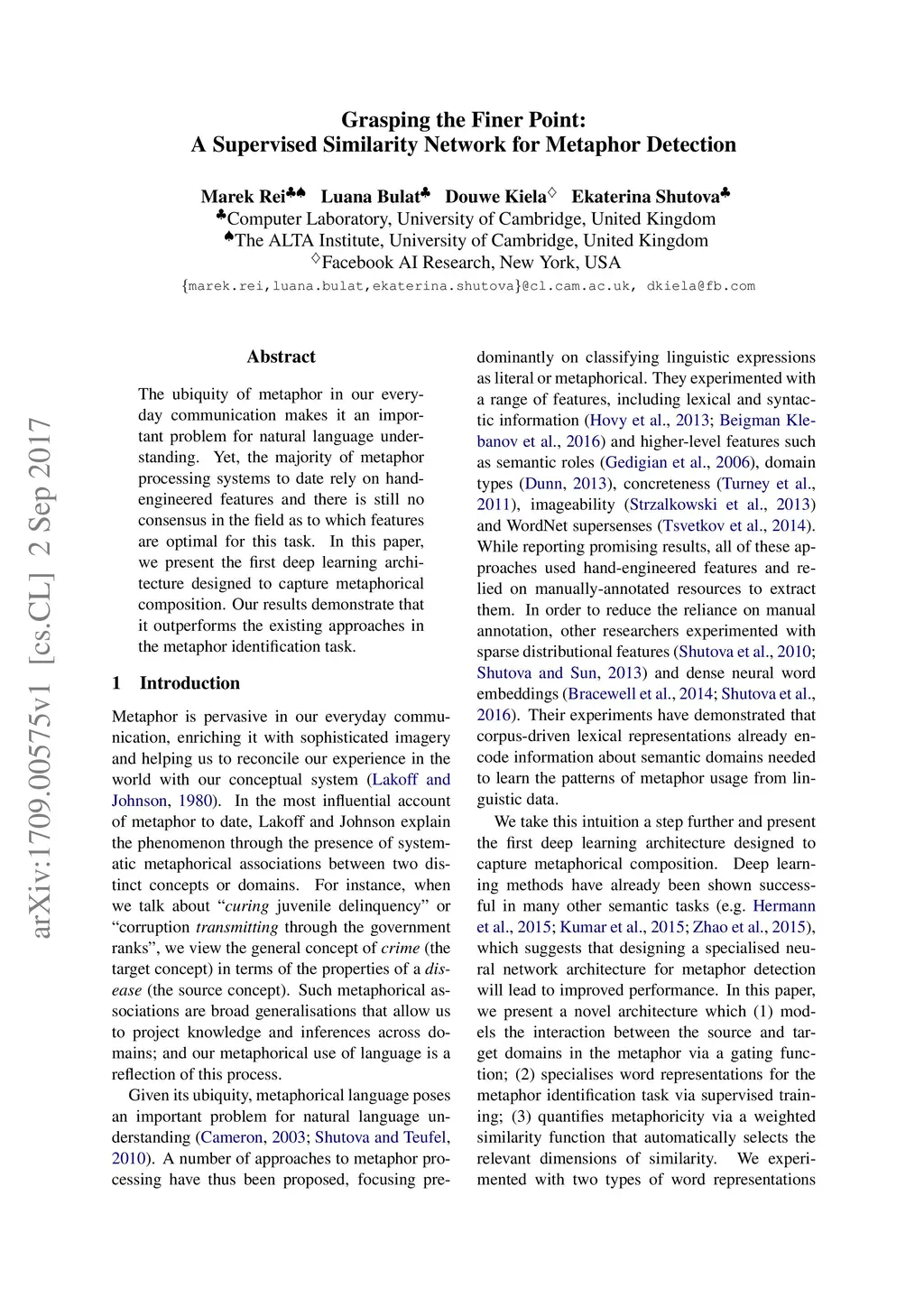 Grasping the Finer Point: A Supervised Similarity Network for Metaphor