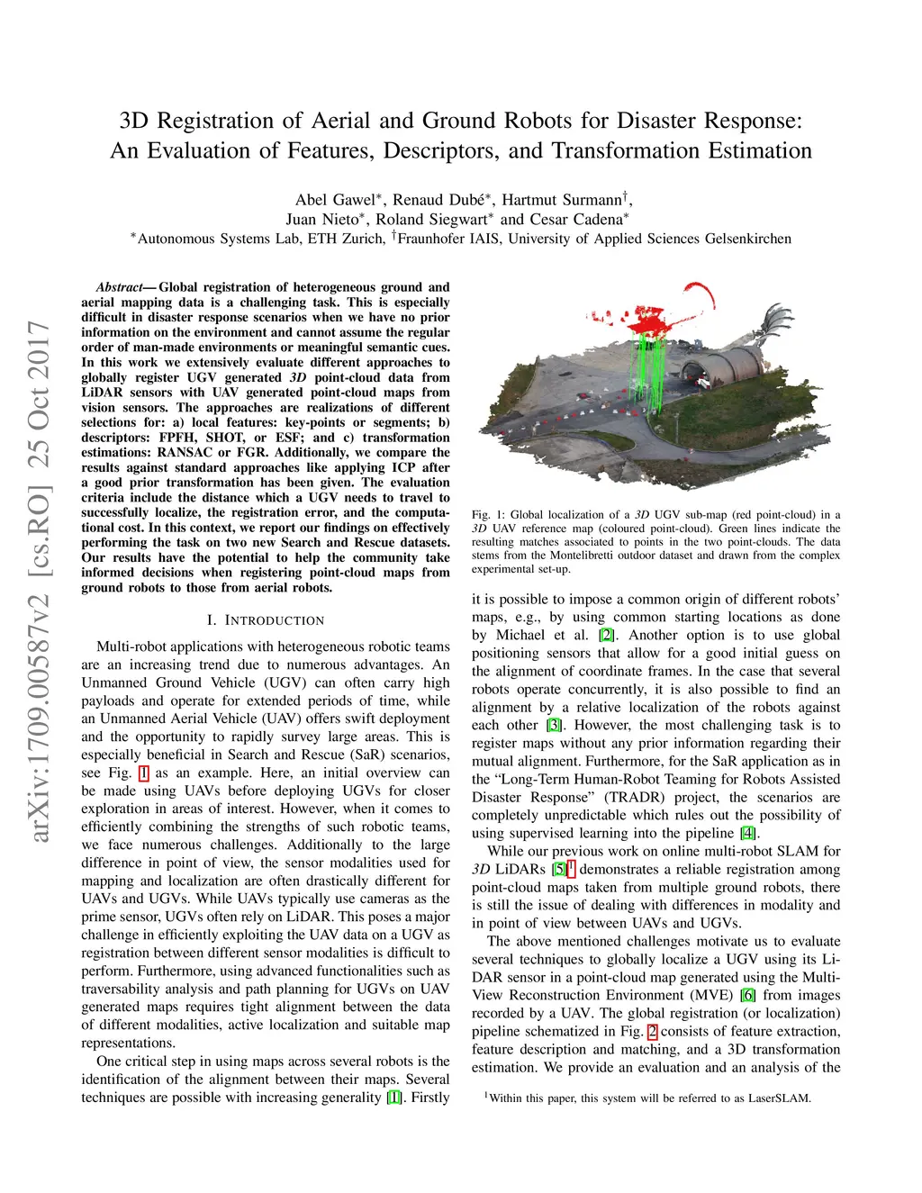 3D Registration of Aerial and Ground Robots for Disaster Response: An