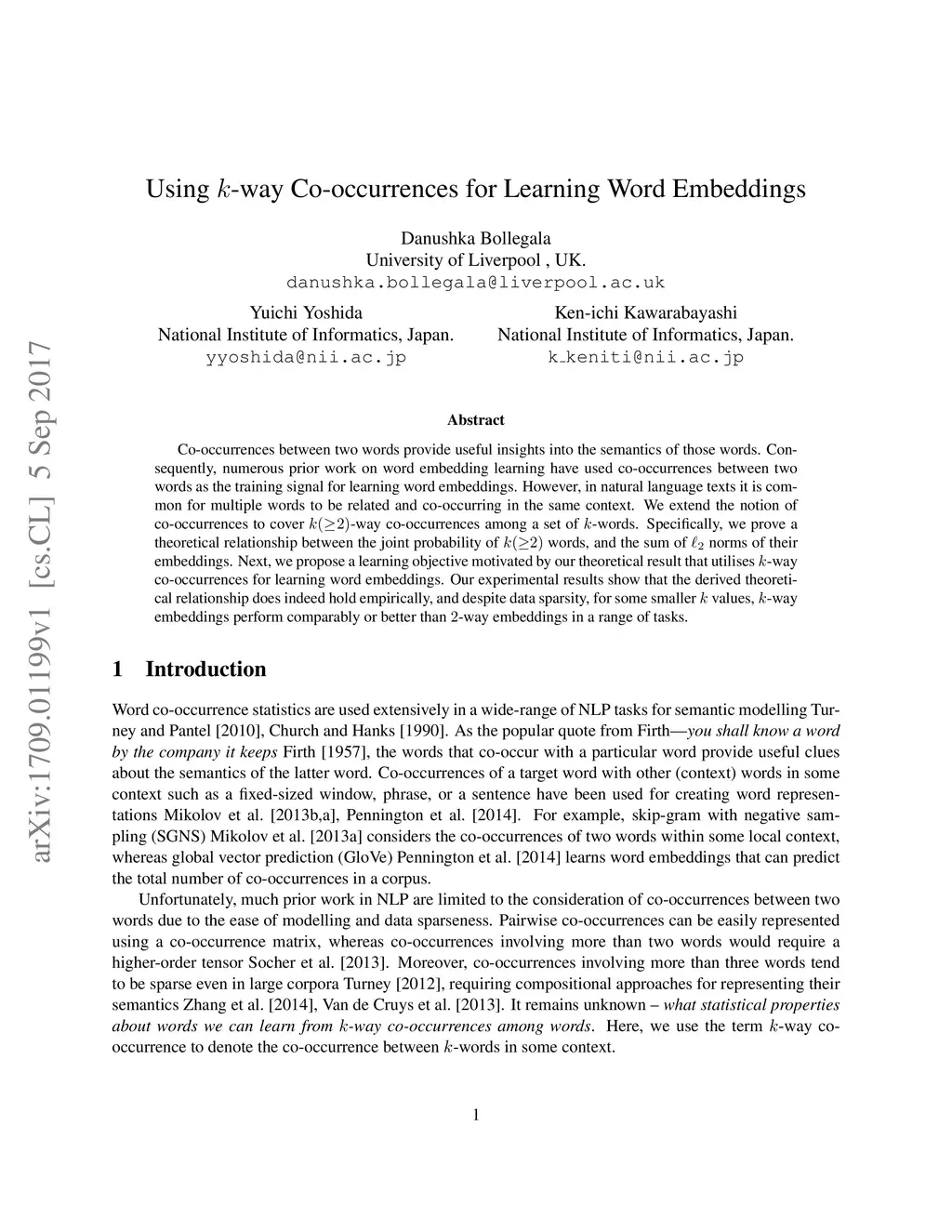 Using -way Co-occurrences for Learning Word Embeddings