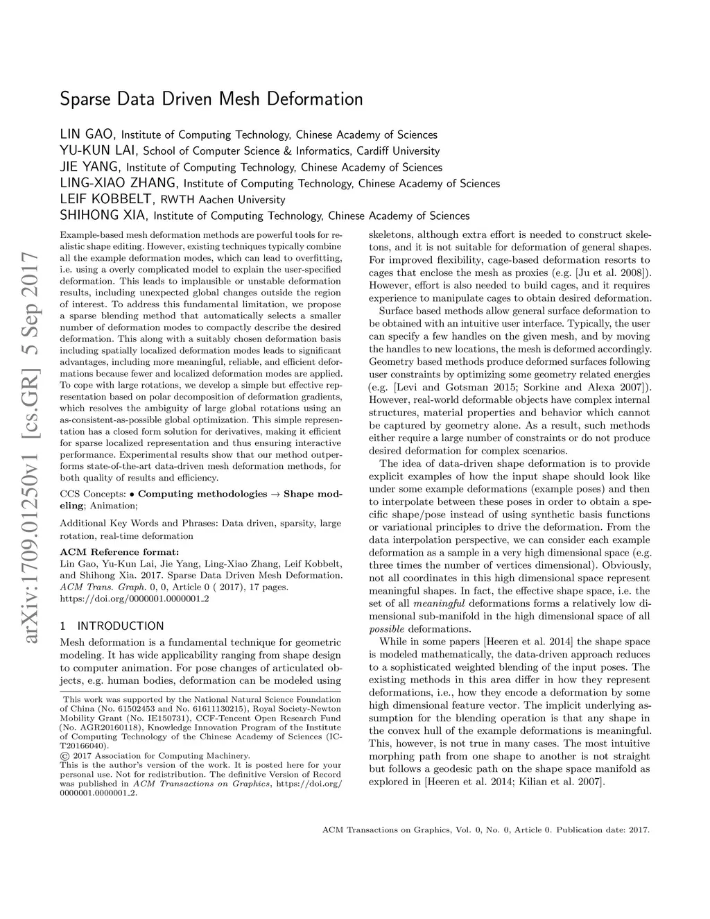 Sparse Data Driven Mesh Deformation