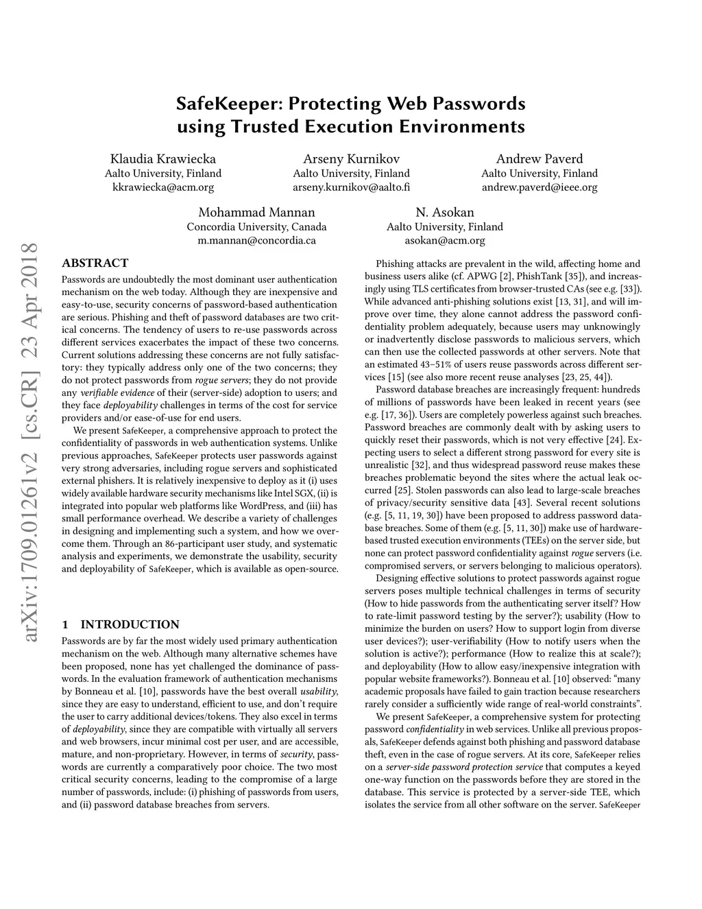SafeKeeper: Protecting Web Passwords using Trusted Execution
