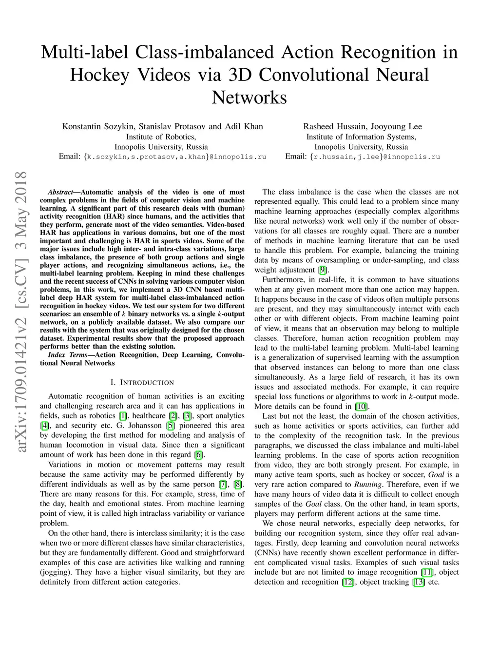 Multi-label Class-imbalanced Action Recognition in Hockey Videos via 3D