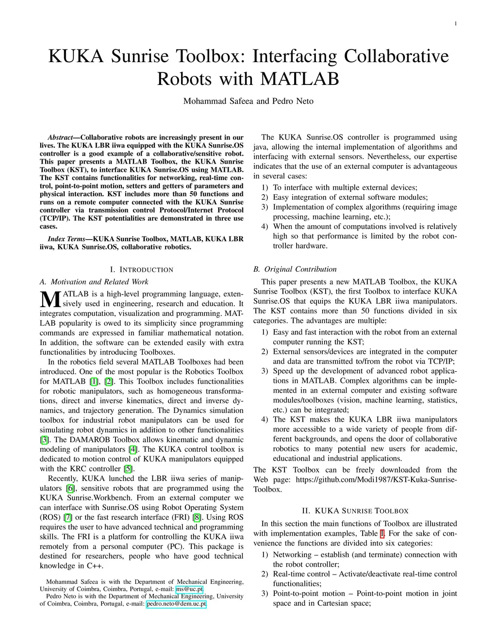 KUKA Sunrise Toolbox: Interfacing Collaborative Robots with MATLAB