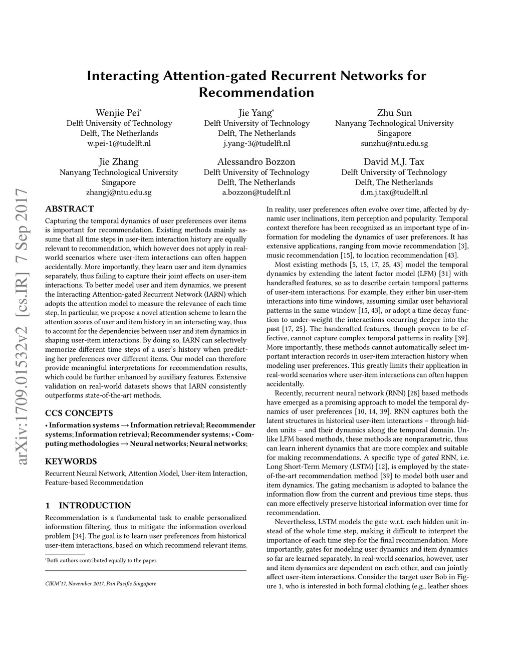 Interacting Attention-gated Recurrent Networks for Recommendation
