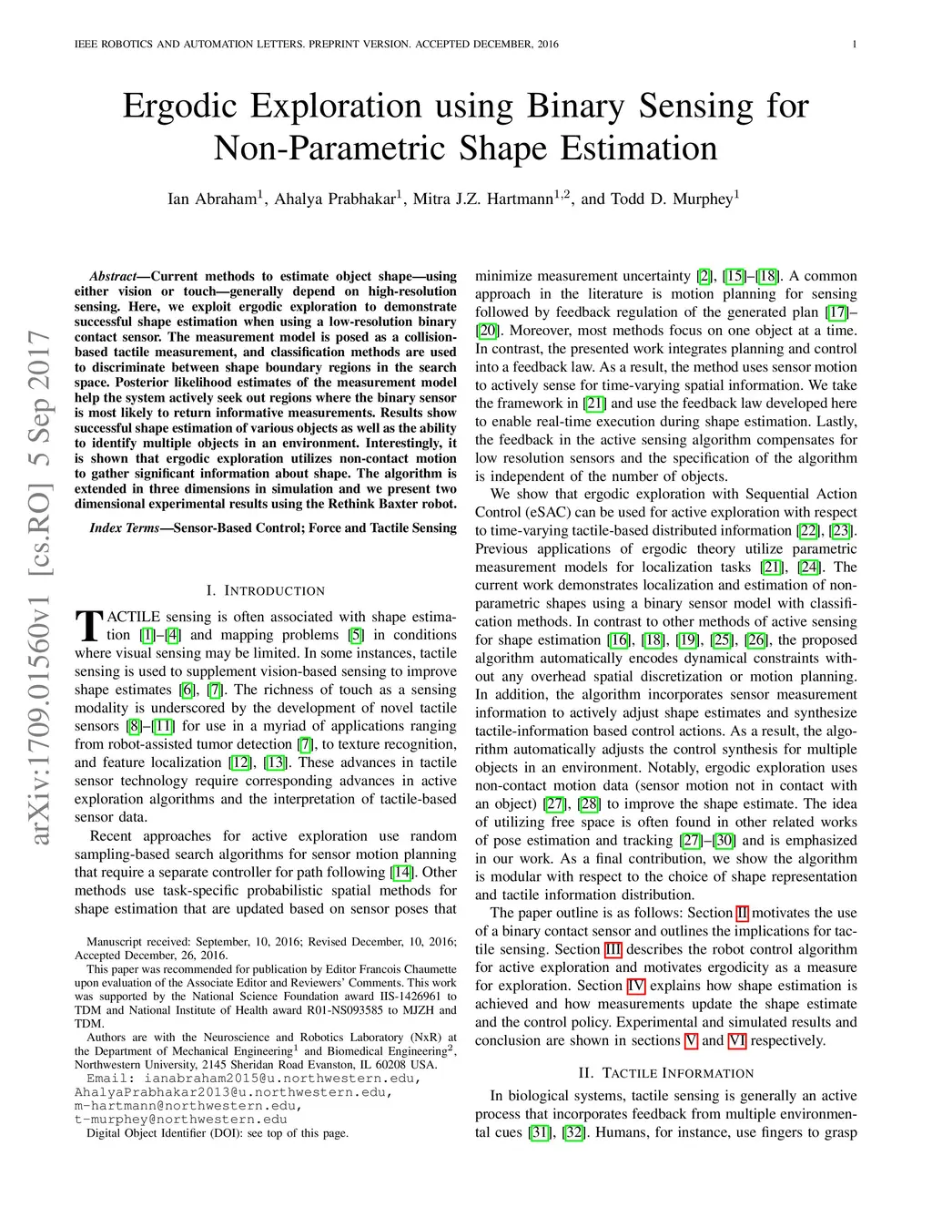 Ergodic Exploration using Binary Sensing for Non-Parametric Shape