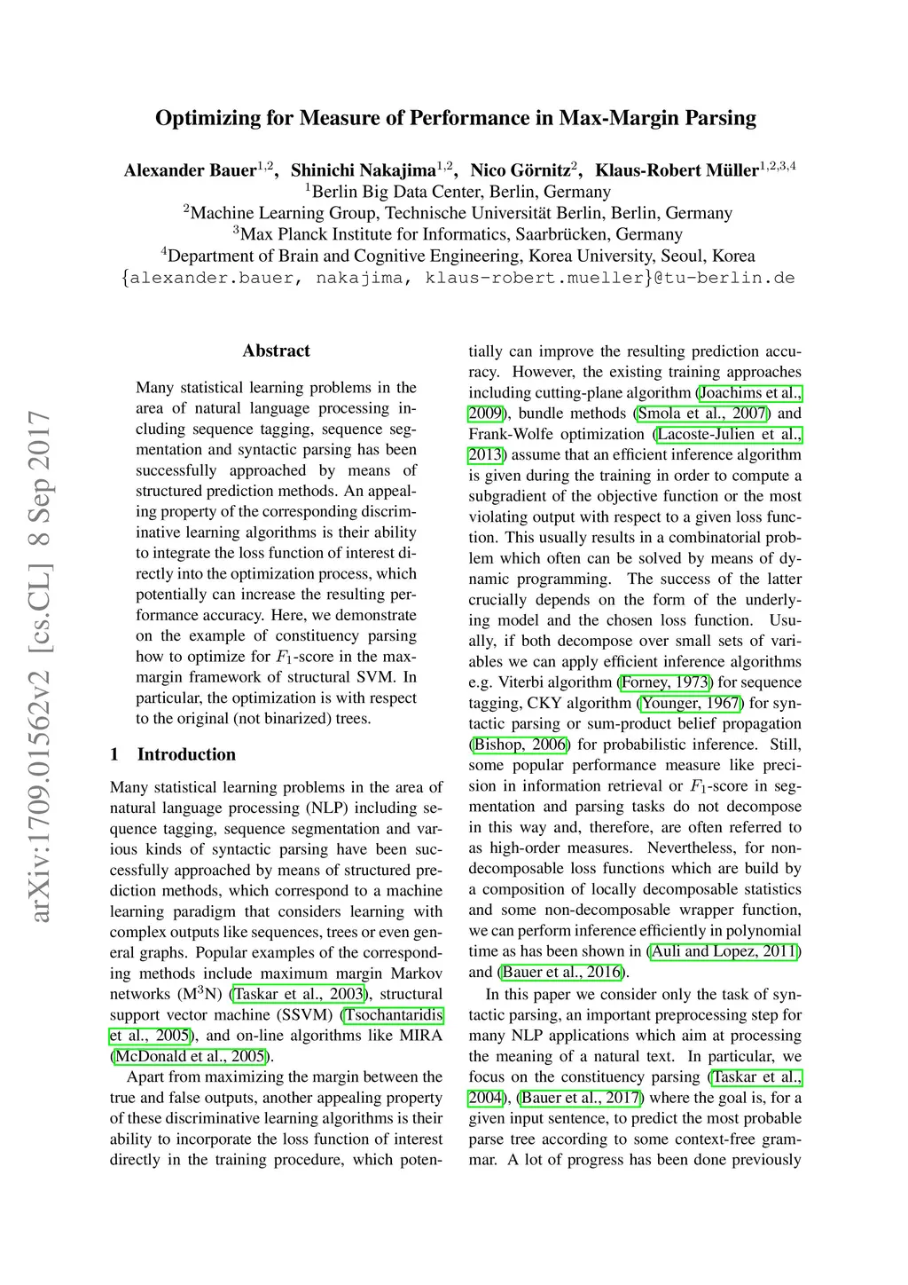 Optimizing for Measure of Performance in Max-Margin Parsing