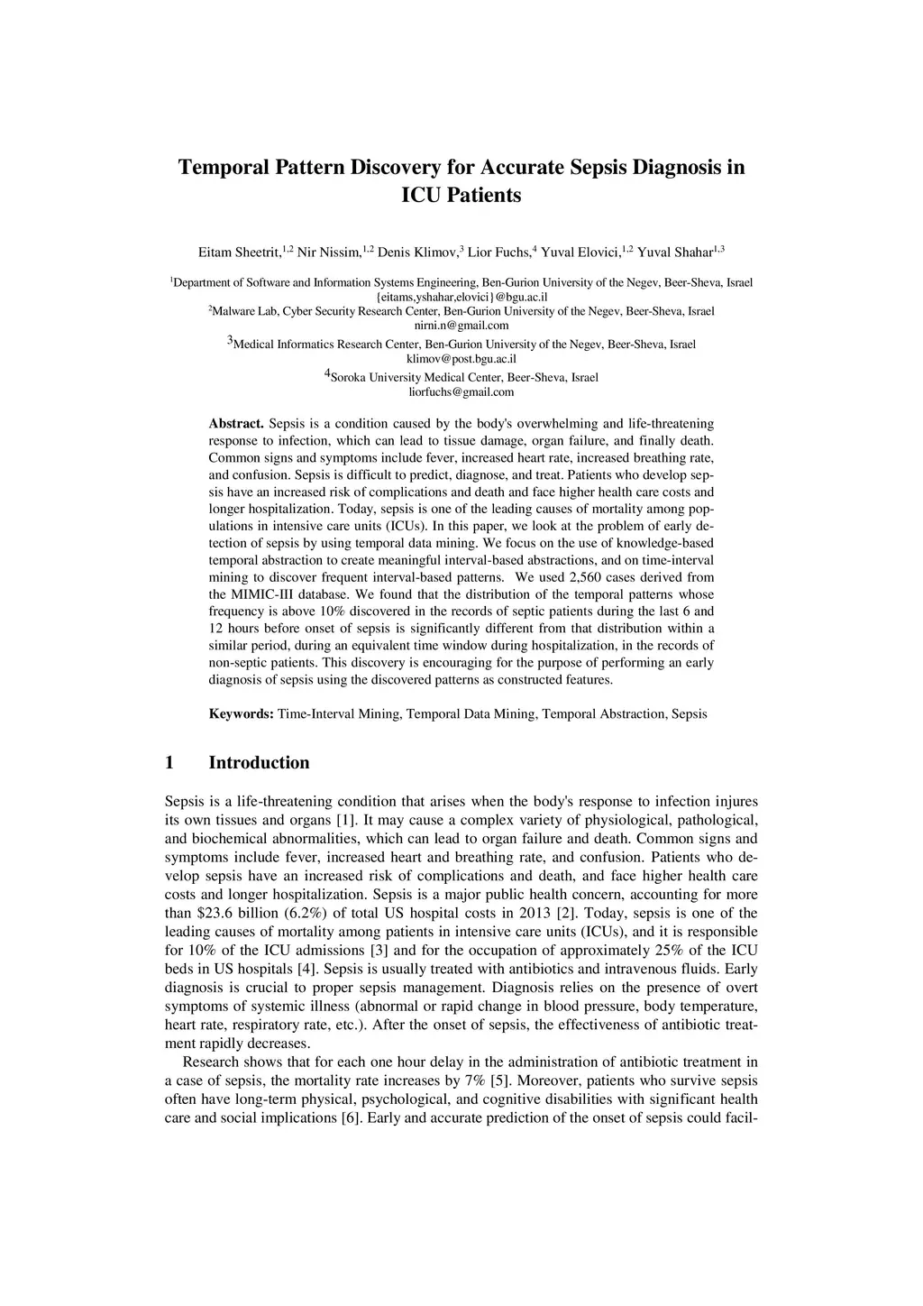 Temporal Pattern Discovery for Accurate Sepsis Diagnosis in ICU Patients