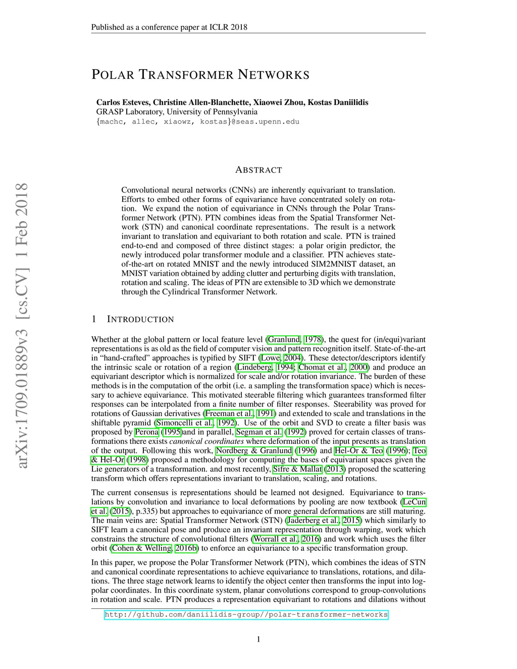 Polar Transformer Networks