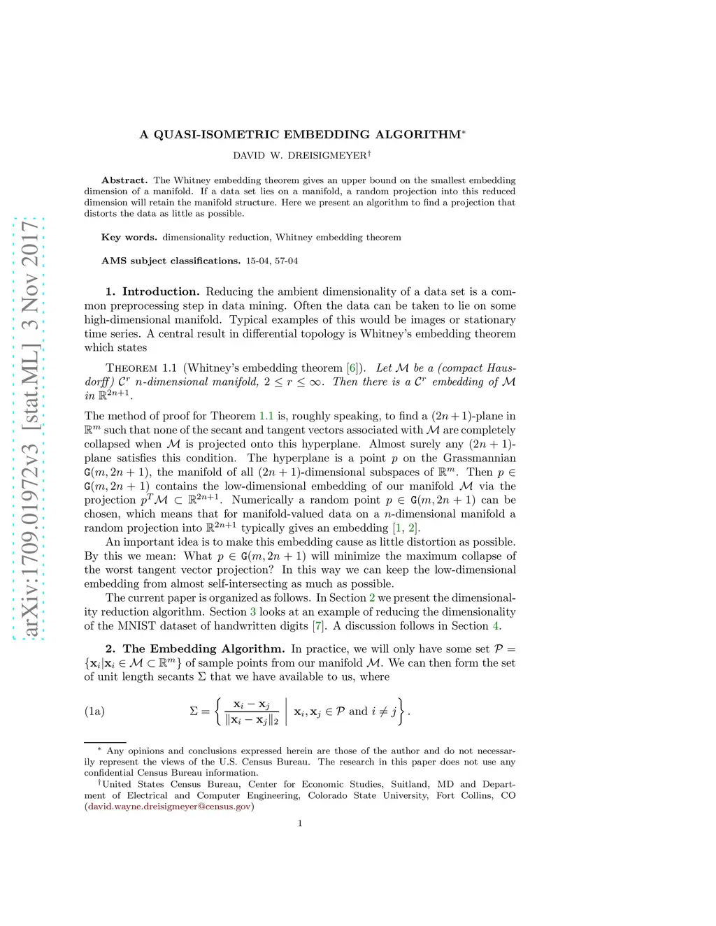 The Whitney embedding theorem gives an upper bound on the smallest embedding dimension of a manifold. If a data set lies on a manifold, a random projection into this reduced dimension will retain the manifold structure. Here we present an algorithm to find a projection that distorts the data as little as possible.