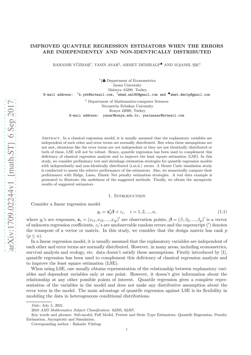 Independently and Non-identically Distributed