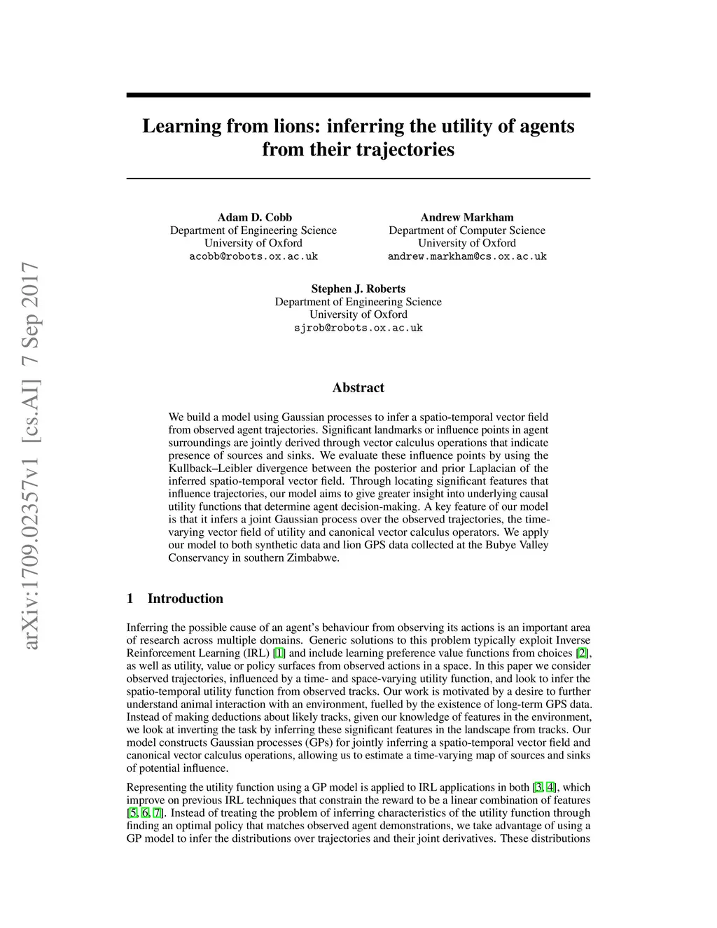 We build a model using Gaussian processes to infer a spatio-temporal vector field from observed agent trajectories. Significant landmarks or influence points in agent surroundings are jointly derived through vector calculus operations that indicate presence of sources and sinks. We evaluate these influence points by using the Kullback-Leibler divergence between the posterior and prior Laplacian of the inferred spatio-temporal vector field. Through locating significant features that influence trajectories, our model aims to give greater insight into underlying causal utility functions that determine agent decision-making. A key feature of our model is that it infers a joint Gaussian process over the observed trajectories, the time-varying vector field of utility and canonical vector calculus operators. We apply our model to both synthetic data and lion GPS data collected at the Bubye Valley Conservancy in southern Zimbabwe.