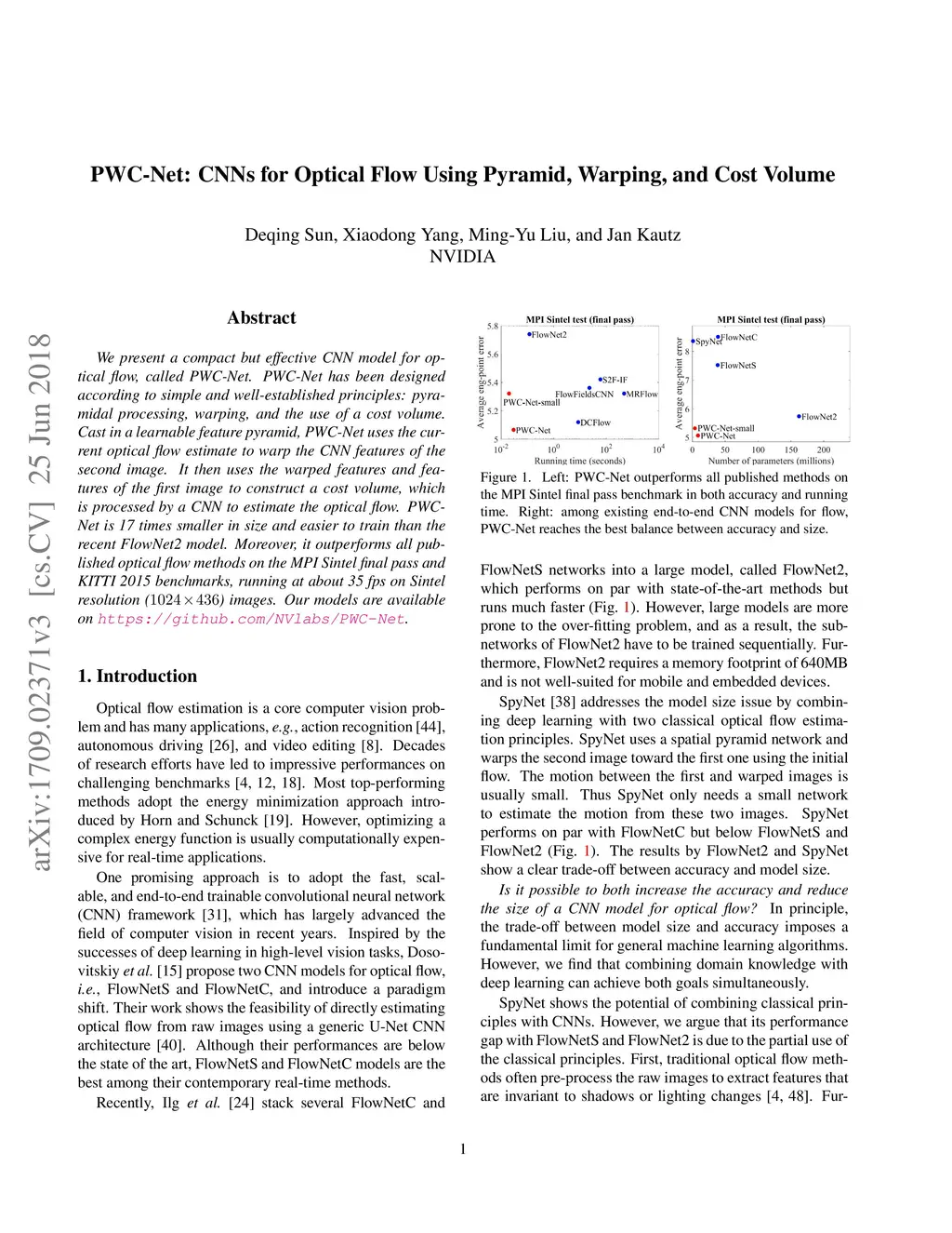 PWC-Net: CNNs for Optical Flow Using Pyramid, Warping, and Cost Volume